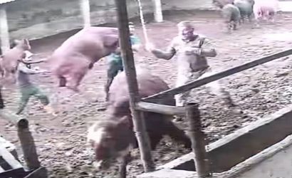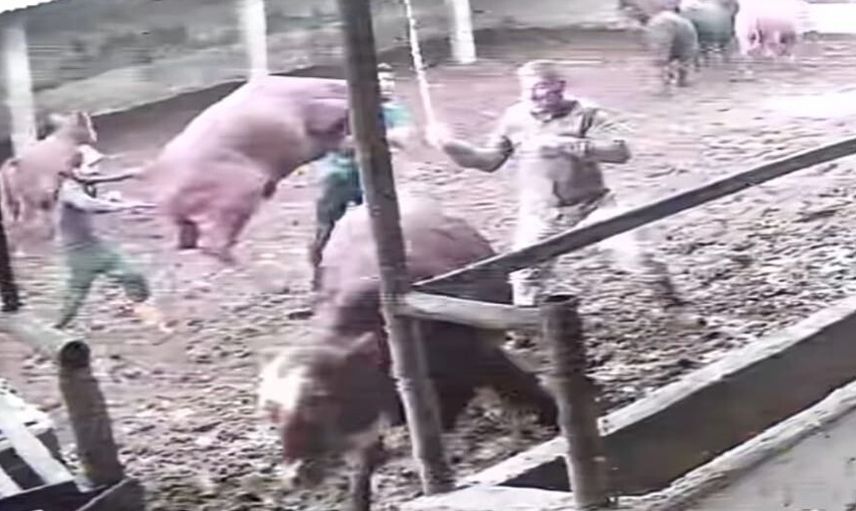 Besicilerin, hayvanları bir araya toplamaya çalıştığı esnada, yön değiştiren bir boğa aniden zıplayarak besiciye boynuzuyla vurdu. Bu şiddetli darbe sonucunda besici, yere düşerek neye uğradığını şaşırdı. O Anlar Kamerada