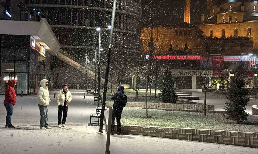 Gündüz saatlerinde etkili olan soğuk hava, gecenin ilerleyen saatlerinde yerini kar yağışına bıraktı. Kısa süre içerisinde yeşil alanlar ve yürüyüş parkurları, karla kaplandı.