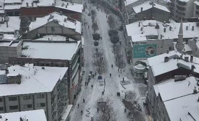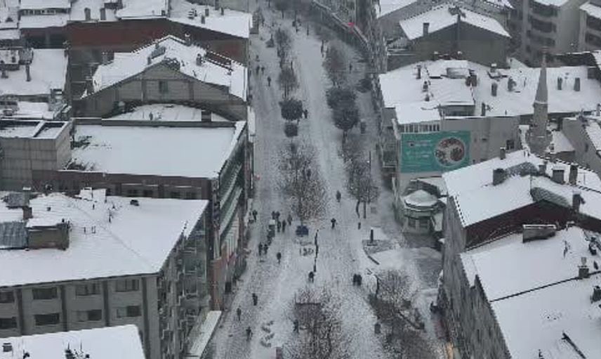 Kar yağışının oluşturduğu bu eşsiz görüntüler, özel bir dron ile havadan kaydedildi ve şehirdeki kış manzarası gözler önüne serildi.