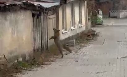 Sokaklarda dolaşan bir tilki, bir anda yükselen köpek seslerini duyunca panikledi. Bu panik anı, bir vatandaşın kamerası tarafından saniye saniye kaydedildi.