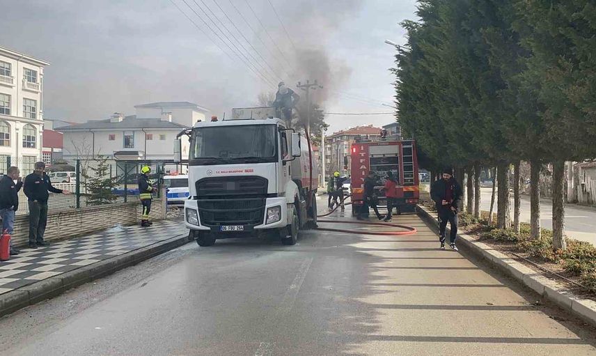 Bolu Belediyesi'ne ait bir yol süpürme aracında çıkan yangın, olay yerine gelen itfaiye ekiplerinin müdahalesiyle söndürüldü.