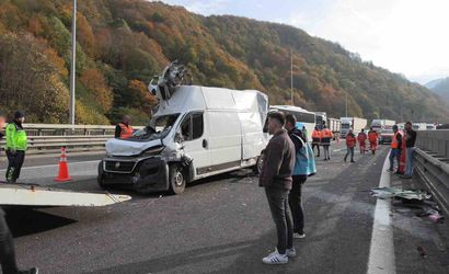 İstanbul istikametinde ilerleyen F.K. yönetimindeki 80 DB 789 plakalı tır, C.A. idaresindeki 44 AHG 684 plakalı yolcu otobüsüyle çarpıştı. Aynı yönde giden A.Y. kontrolündeki 34 GZK 273 plakalı panelvan da kazaya karıştı, bu arada panelvan yolda devrildi.