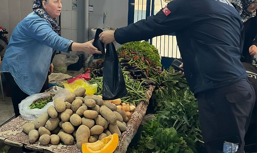 ZABITA EKİPLERİNDEN PAZARCI ESNAFINA ÇÖP POŞETİ DESTEĞİ