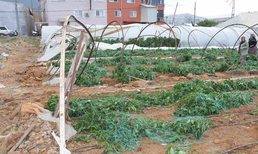 Sabaha karşı etkisini kaybeden fırtına, naylon örtüleri parçalayarak ürünlerin hasar görmesine neden oldu. Olay sonrası, mahalle sakinleri durumu değerlendirmek üzere sabahın erken saatlerinde tarım arazilerine yöneldi.