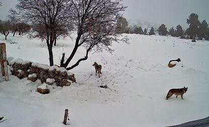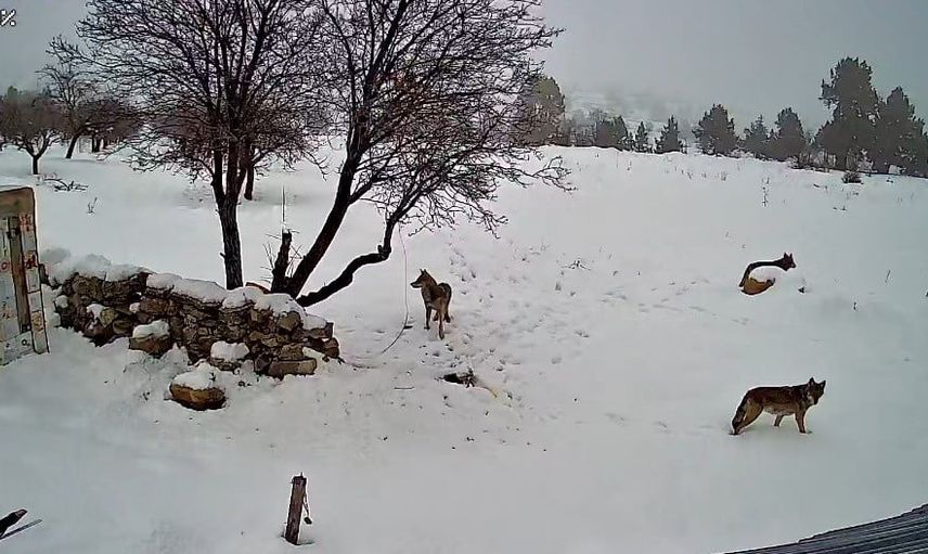 Yerleşim alanına yaklaşan kurtlar, bir evin bahçesine girmeye çalışırken görüntülendi. Güvenlik kameraları, öncü olan kurdun temkinli bir şekilde bahçeye yaklaşma çabasını kaydetti. Ancak evde kimsenin olmamasından kaynaklı yiyecek bulamayan kurtlar, boş döndü.
