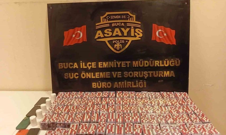 İZMİR'İN BUCA İLÇESİNDE POLİS EKİPLERİNİN DÜZENLEDİĞİ OPERASYONDA BİR ADRESTE YAPILAN ARAMADA 11 BİN 296 UYUŞTURUCU NİTELİKLİ HAP ELE GEÇİRİLİRKEN OLAYLA İLGİLİ ŞÜPHELİ GÖZALTINA ALINDI.