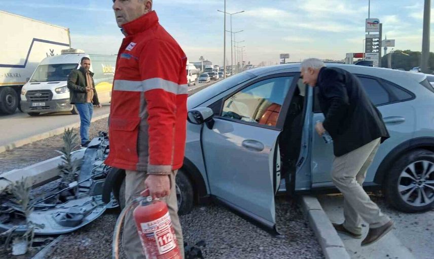 Kaza sırasında, akaryakıt istasyonundan temin edilen yangın söndürme ekipmanları ile araçta hızla müdahale edildi. Çarpmanın etkisiyle sürücü, bir süre araçtan uzaklaşarak yere uzandı.