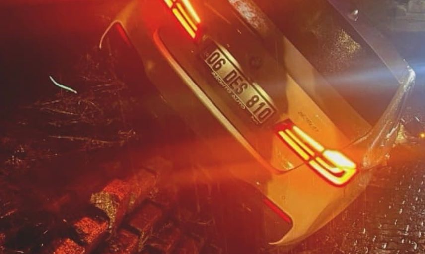 BURSA'NIN İNEGÖL İLÇESİNDE MEYDANA GELEN KAZADA KONTROLDEN ÇIKAN OTOMOBİL DUVARA ÇARPARAK ÜZERİNE ÇIKTI