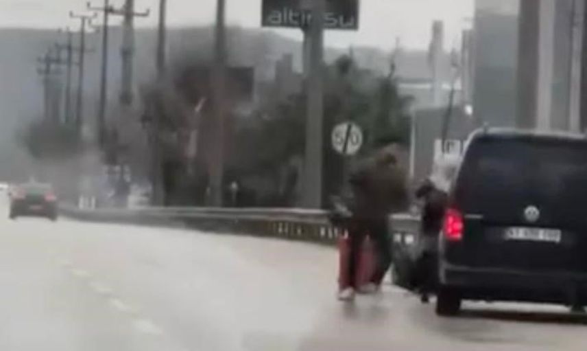 Tartışmanın büyümesiyle birlikte, sürücü aracından inerek motokuryeyi darp etmeye başladı. O anlar çevredeki güvenlik kameralarına yansıdı. Kavga sırasında, kadınların olayı ayırma çabaları sürücünün öfkesini durdurmaya yetmedi. O esnada bir çocuk ise yaşananlara şaşkınlıkla şahitlik etti.