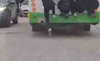 BURSA’NIN YILDIRIM İLÇESİ MİLLET MAHALLESİ’NDE SEYİR HALİNDEKİ ÖZEL HALK OTOBÜSÜNÜN ARKASINA TUTUNAN 4 LİSE ÖĞRENCİSİ, HEM KENDİ CANLARINI HEM DE TRAFİKTEKİ DİĞER SÜRÜCÜLERİ TEHLİKEYE ATTI. TEHLİKELİ ANLAR, ÇEVREDEKİ BİR VATANDAŞIN CEP TELEFONU KAMERASINA YANSIDI.