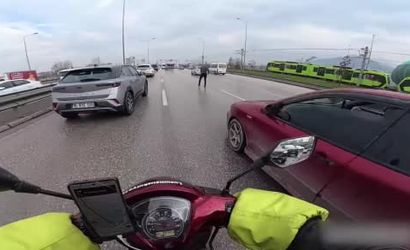 Bursa-İzmir Yolu üzerinde, iki sürücü arasında ‘yol verme’ tartışması sırasında ilginç anlar yaşandı. Taraflar, araçlarından inerek birbirlerine uçan tekmelerle saldırdı. Bu sırada, çevreden geçen bir kurye ve diğer sürücüler olaya müdahale ederek tarafları ayırmayı başardı.
