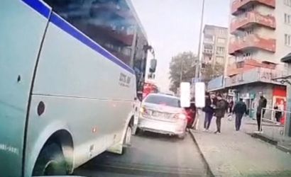 BURSA'DA SERVİS ARACI İLE OTOMOBİL ARASINDA YOL VERME TARTIŞMASI ARAÇ KAMERASINA YANSIDI.