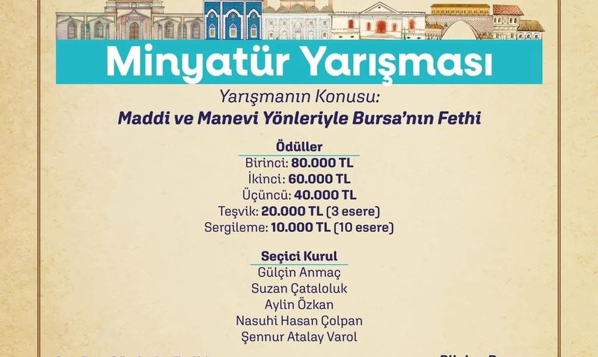 Yıldırım Belediyesi, 2025-2026 Kültür Sanat Sezonu çerçevesinde "Beylikten Cihan Devleti’ne" temasıyla yürüttüğü etkinlikler arasında, Bursa’nın fethinin tarihi, kültürel, sanatsal ve felsefi yönlerine dikkat çekiyor. Bu kapsamda, Bursa’nın fethinin 700’üncü yıl dönümüne özel olarak düzenlenen Maddi ve Manevi Yönleriyle Bursa’nın Fethi Minyatür Yarışması için başvurular devam ediyor.