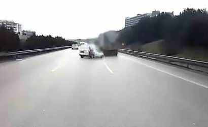 Kamyonet ilk olarak bariyerlere çarparak durmaya çalıştı, ardından kendi ekseni etrafında dönmeye başladı. Sürücü, ani bir manevra yaparak arkasından gelen kamyonete çarpmaktan son anda kurtuldu.