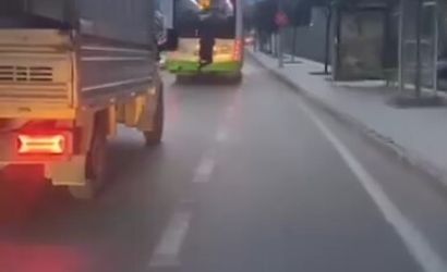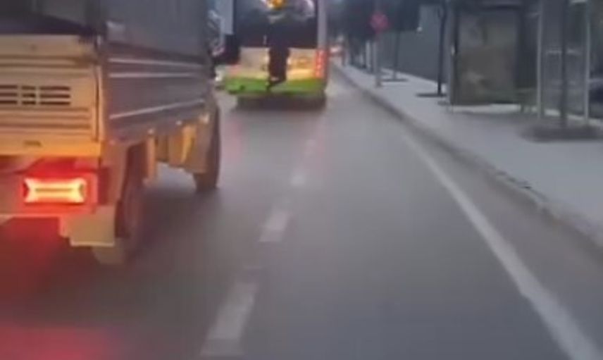 İlk olarak, yolun ortasında güvenlik önlemi almadan ilerleyen bir bisikletli dikkati çekti. Ardından, bir genç, çalışan bir halk otobüsünün arka kısmına tutunarak tehlikeli bir yolculuğa çıktı. Her iki gencin de dikkatli davranmadığı ve bu durumun hem sürücüler hem de kendileri için risk oluşturduğu belirtiliyor.