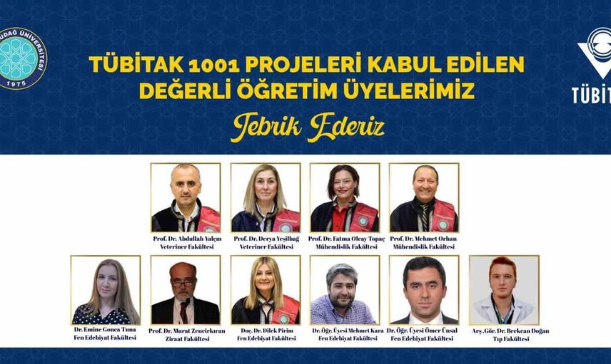 ARDEB'in açıkladığı listeye göre, BUÜ’den desteklenen projelerde yer alan akademisyenler arasında Prof. Dr. Abdullah Yalçın, Prof. Dr. Derya Yeşilbağ, Prof. Dr. Fatma Olcay Topaç, Prof. Dr. Mehmet Orhan, Prof. Dr. Murat Zencirkıran, Doç. Dr. Dilek Pirim, Dr. Öğr. Ü. Mehmet Kara, Dr. Öğr. Ü. Ömer Uysal, Arş. Gör. Berkcan Doğan ve Doktora Sonrası Araştırmacı Emine Gonca Tuna yer alıyor. Toplamda 10 projenin kabulü ile BUÜ, Türkiye genelinde en fazla proje desteği alan 9. yükseköğretim kurumu olmayı başardı.