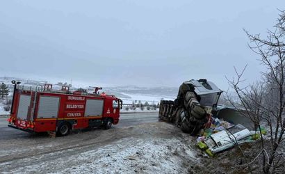 Çorum'un Sungurlu ilçesinde buzlanma nedeniyle bir tır devrildi ve sürücüsü yaralandı.