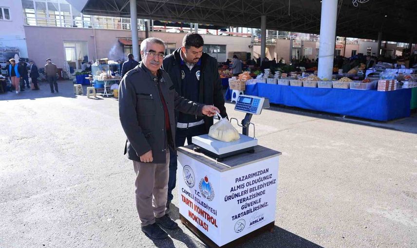 Çameli Belediyesi, halkın alışveriş güvenliğini artırmak amacıyla kapalı pazar yerinde Güvenli Terazi (Tartı Kontrol Noktası) uygulamasını başlattı.