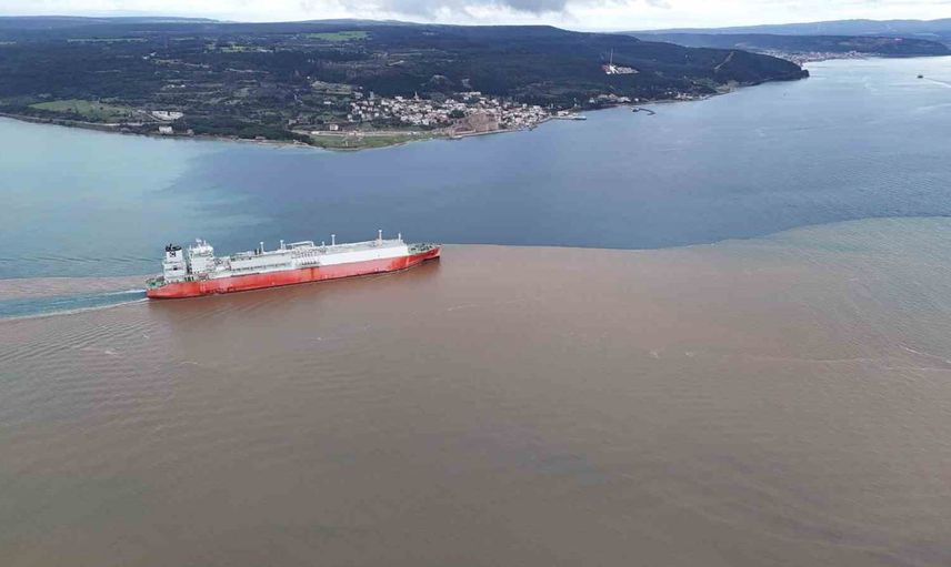 Çanakkale Boğazı’nda sağanak yağışların ardından, farklı bölgelerden akarak boğaza ulaşan çamurlu su, denizin rengini kahverengiye dönüştürdü.