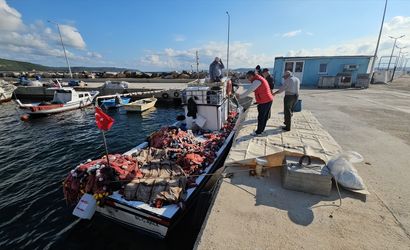 Çanakkale'nin Eceabat ilçesinde bir balıkçının lüfer avı için denize bıraktığı ağlara 1000 palamut takıldı.