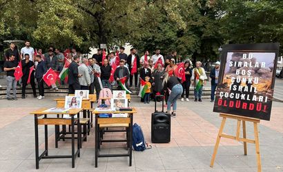 Etkinlikte, parka yerleştirilen boş sıralara, Gazze'de yaşamını yitiren çocukların fotoğrafları asıldı ve okul çantası, kalem, defter, silgi gibi öğrenim malzemeleri bırakıldı.