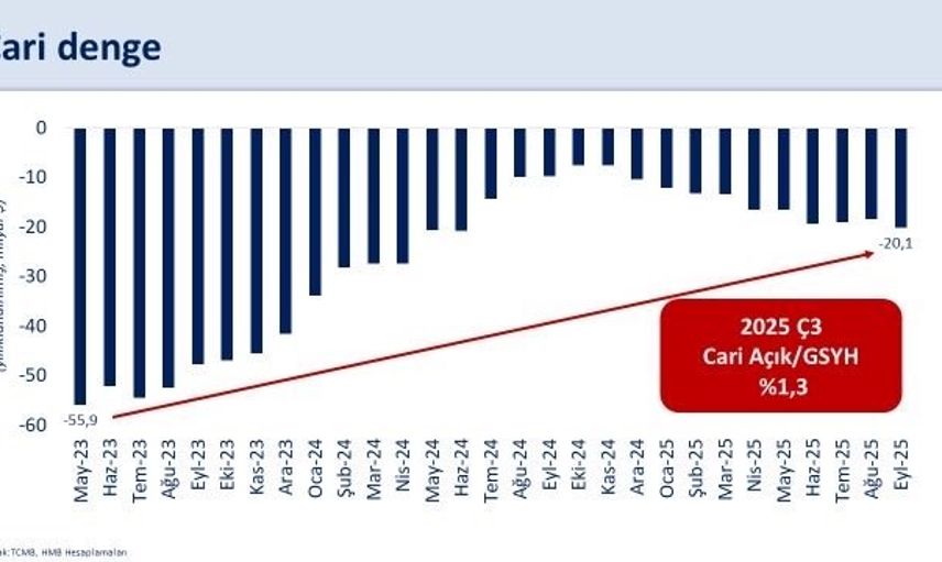 HAZİNE VE MALİYE BAKANI MEHMET ŞİMŞEK, "EYLÜLDE YILLIK CARİ AÇIK 20,1 MİLYAR DOLAR GERÇEKLEŞTİ. ÜÇÜNCÜ ÇEYREKTE YILLIK AÇIĞIN MİLLİ GELİRE ORANININ YÜZDE 1,3 İLE YATAY SEYRETMESİNİ BEKLİYORUZ" DEDİ.