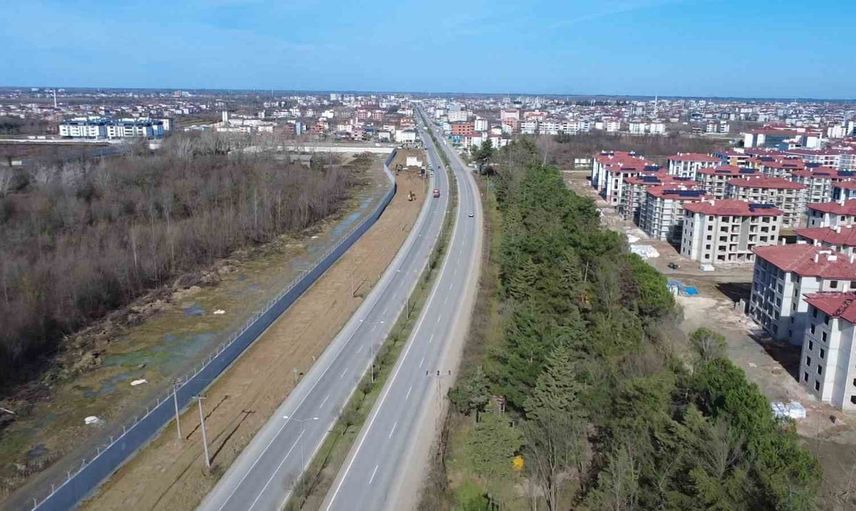 SAMSUN SU VE KANALİZASYON İDARESİ (SASKİ) EKİPLERİNİN, ÇARŞAMBA-AYVACIK KARAYOLU MEVKİİNDE YÜRÜTTÜĞÜ İÇME SUYU HATTI YENİLEME VE BAĞLANTI ÇALIŞMALARI HAVADAN GÖRÜNTÜLENDİ.