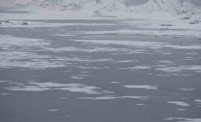 ADIYAMAN’IN ÇELİKHAN İLÇESİNDE YÜZEN ADALARIN YER ALDIĞI ÇAT BARAJININ YÜZEYİ DONDURUCU SOĞUK NEDENİYLE TAMAMEN BUZ TUTTU.