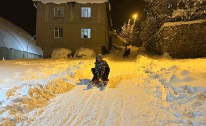 VAN’IN ÇATAK İLÇESİNDE ETKİLİ OLAN YOĞUN KAR YAĞIŞI NEDENİYLE OKULLARIN İL GENELİNDE TATİL EDİLMESİNİ FIRSATA ÇEVİREN ÖĞRENCİLER, KIZAKLARIYLA GECE GEÇ SAATLERE KADAR KAYARAK KARIN KEYFİNİ ÇIKARDI.