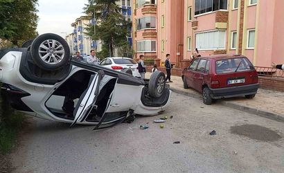 OTOMOBİL PARK HALİNDE OLAN ARACA ÇARPIP TERS ŞEKİLDE DURABİLDİ: 3 YARALI