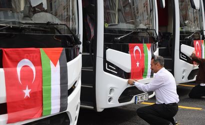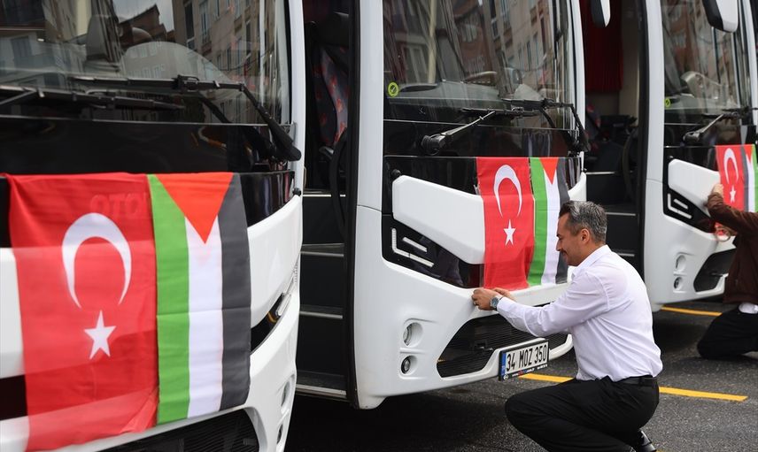 Belediyeden yapılan açıklamada, Türk ve Filistin bayraklarıyla donatılan temizlik araçlarının bir gün boyunca bu şekilde hizmet verdiği belirtildi.
