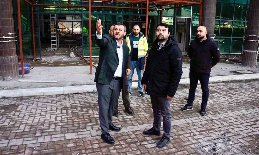 Programın ilerleyen bölümlerinde yenilenen terminal binasının inşaat alanını ziyaret eden Cem Şahin, burada da çalışmaların son durumu hakkında görüşmelerde bulundu.