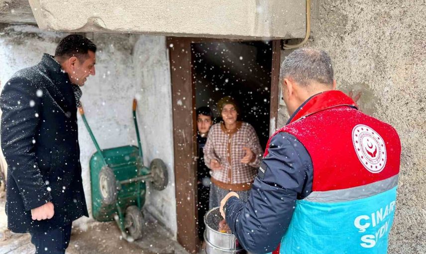 Yoğun kar yağışının etkili olduğu sabah saatlerinde, Çınar Sosyal Yardımlaşma ve Dayanışma Vakfı harekete geçerek sokağa çıkamayan kimsesiz, hasta ve yaşlı vatandaşlara sıcak yemek dağıttı.