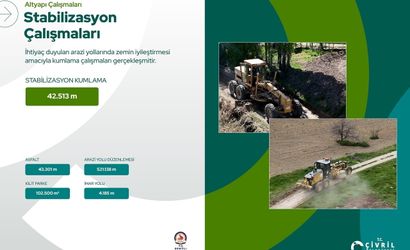 Kırsal alanlarda da önemli adımlar atıldı. Yağmur suları nedeniyle bozulan 521.138 metre arazi yolu yeniden düzenlendi. Zemin sağlamlaştırması gereken 42.513 metre yol için ise stabilizasyon kumlama çalışmaları yapıldı.
