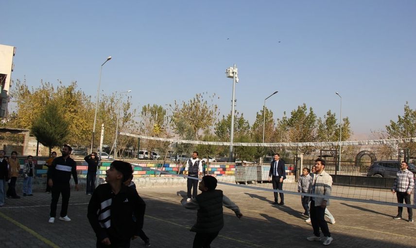 CİZRE MİLLİ EĞİTİM MÜDÜRÜ ŞAHAN İKE VE ŞUBE MÜDÜRÜ MEVLİT GAYİRİNAL, VATAN ORTAOKULU ÖĞRENCİLERİ İLE BEDEN EĞİTİMİ DERSİNDE BİRARAYA GELİP HEM ZAMAN GEÇİRDİ, HEM DE ÇOCUKLARLA VOLEYBOL MAÇI OYNADI.