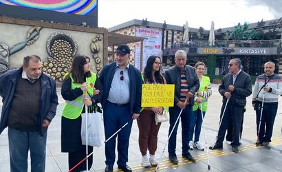 Çorum'da görme engellilerin ulaşımda karşılaştıkları sorunlara dikkat çekmek amacıyla "Beyaz Baston Zinciri Farkındalık Yürüyüşü" etkinliği gerçekleştirildi.