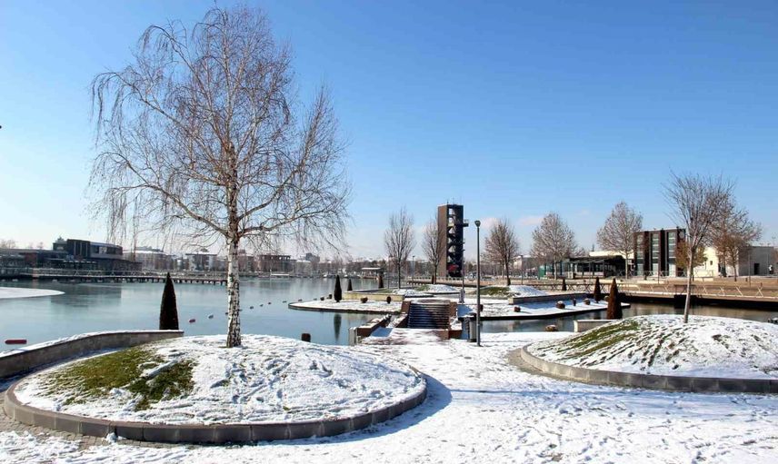 Yaz aylarında kalabalık olan Millet Bahçesi, kış mevsiminde de eşsiz manzarasıyla dikkat çekmeyi sürdürüyor. Şehrin merkezindeki bu alan, kar yağışının ardından bembeyaz bir örtüyle kaplanarak görsel bir şölen sundu.