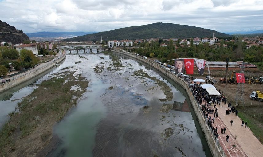 Çorum'un Osmancık ilçesinde Kızılırmak Nehri'ne inşa edilecek şişme kauçuk savak projesinin temeli atıldı.