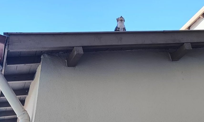 Alaca ilçesi Ankara Caddesi'ndeki bina çatısında uzun süre mahsur kalan kedi, çevredeki vatandaşların dikkatini çekti.