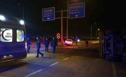 Olay, Alaca ilçesi Çorum-Yozgat çevre yolu Zile Kavşağı'nda gerçekleşti. Edinilen bilgilere göre, Zile yönünde ilerleyen Nursait Y. yönetimindeki 34 VMV 65 plakalı BMW otomobil, kavşakta Çorum istikametinde hareket eden Ali Oktay Ö.'nün kullandığı 66 DZ 272 plakalı tır ile çarpıştı. Çarpmanın etkisiyle tır devrilirken, dorsesinde bulunan şeker pancarları yola saçıldı.