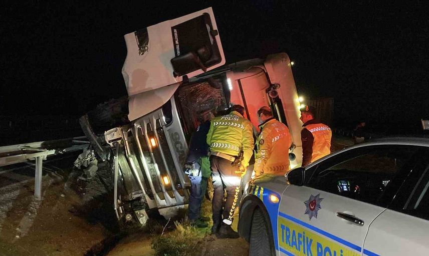 Kaza, Çorum-Samsun karayolunun 32. kilometresinde gerçekleşti. Sürücü Umut Furkan A.’nın kontrolünü kaybetmesi sonucunda 55 BK 143 plakalı Scania marka tır devrildi.