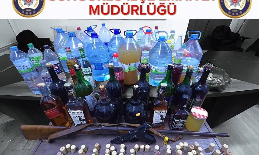 Emniyet güçleri, yılbaşı döneminde sahte alkol satışını önlemek amacıyla 30 ve 31 Aralık tarihlerinde 4 ayrı adrese baskın düzenledi. Yapılan aramalarda, sahte alkol üretiminde kullanılan çeşitli malzemeler ile birlikte 1 adet ruhsatsız tüfek ve 1 adet tabanca da ele geçirildi.