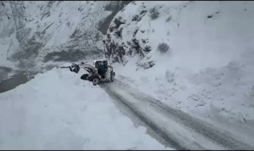Hakkari'nin Çukurca ilçesinde kara yolunda gerçekleşen yoğun kar yağışı, çığların düşmesine neden oldu ve ekiplere zorlu anlar yaşattı.