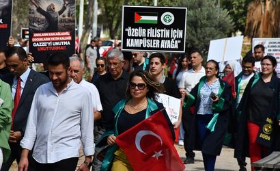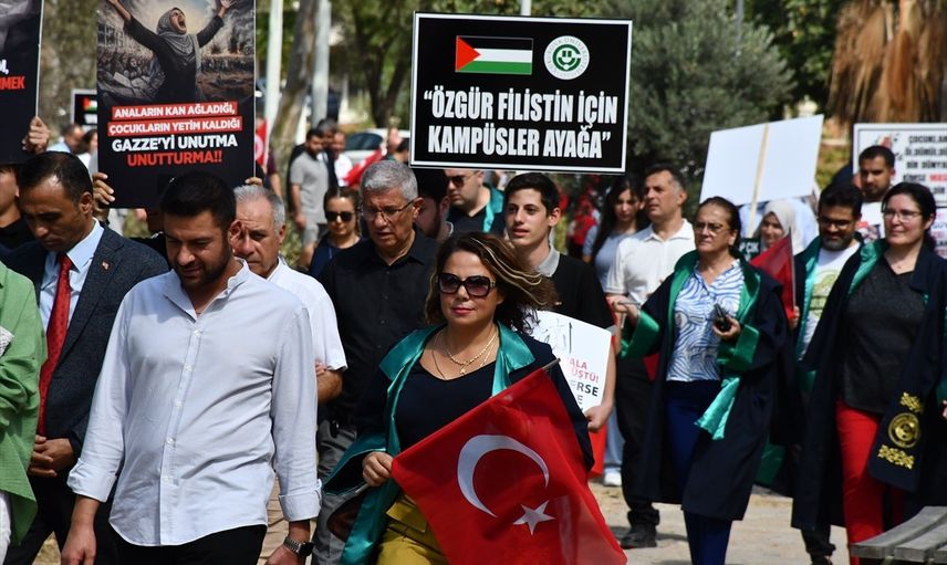 Adana'da bulunan Çukurova Üniversitesi (ÇÜ), Filistin halkına destek vermek amacıyla bir yürüyüş gerçekleştirdi.