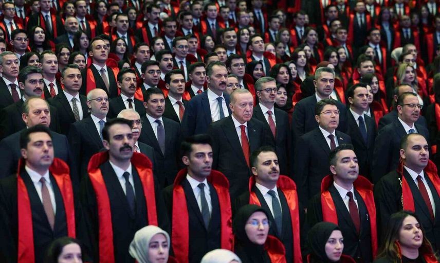 Erdoğan, eğitimlerini tamamlayan 712 hakim, 492 cumhuriyet savcısı ve 147 idari hakim için tebrik konuşması yaptı. Ayrıca, ülke genelinde 25.449 hakim ve savcı arasında 9.812 kadının yer aldığını vurgulayarak, bu durumun önemine dikkat çekti.