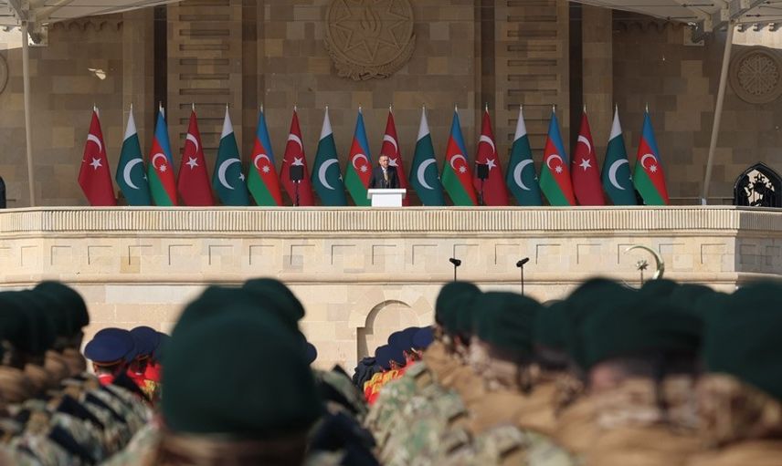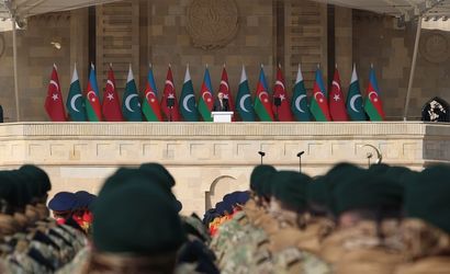 CUMHURBAŞKANI ERDOĞAN, BAKÜ’DE DÜZENLENEN 8 KASIM ZAFER GÜNÜ TÖRENİ’NDE YAPTIĞI KONUŞMADA, "BU ZAFERİ BİR SON OLARAK DEĞİL, KAFKASYA'DA KALICI BARIŞA GİDEN YOLUN KİLOMETRE TAŞI OLARAK GÖRÜYORUZ. BİZ KALICI BARIŞ NOKTASINDA SON DERECE ÜMİT VARIZ, İYİMSERİZ" DEDİ.