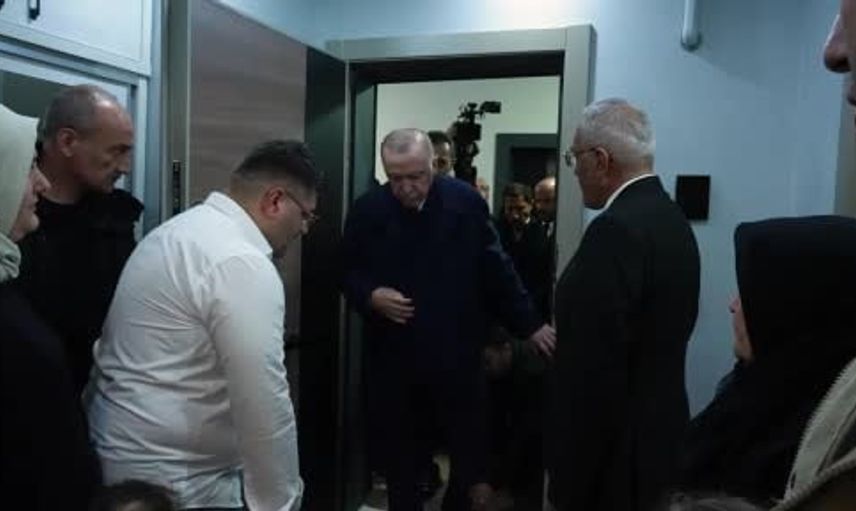 Cumhurbaşkanı Recep Tayyip Erdoğan, beraberindeki heyetle birlikte depremzedelerden bir ailenin yeni evini ziyaret etti.