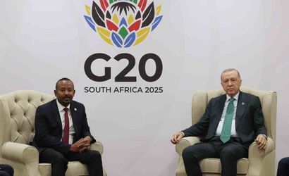 Cumhurbaşkanı Recep Tayyip Erdoğan, G20 Liderler Zirvesi için bulunduğu Güney Afrika Cumhuriyeti'nde, Etiyopya Başbakanı Abiy Ahmed Ali'yi kabul etti.