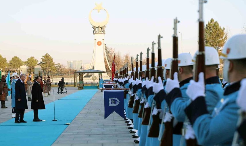 Erdoğan ve İbrahim, tören alanında hazır bulunduktan sonra 21 pare top atışı ile birlikte iki ülkenin milli marşları çalındı. Enver İbrahim, Muhafız Alayı Tören Kıtası’nı selamlayarak ‘Merhaba asker’ dedi.