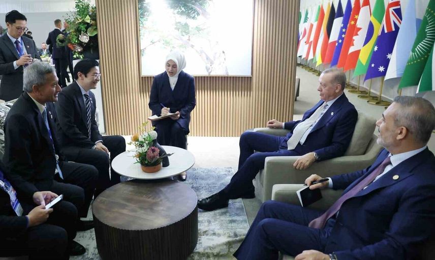 Cumhurbaşkanı Recep Tayyip Erdoğan, G20 Liderler Zirvesi dolayısıyla bulunduğu Güney Afrika Cumhuriyeti’nde, Singapur Başbakanı Lawrence Wong ile bir araya geldi.